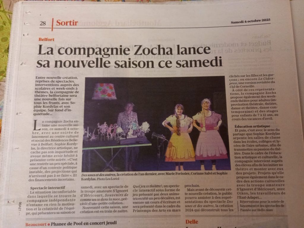 La Cie ZOCHA vous remercie pour votre présence à la soirée d'ouverture et a hâte de vous retrouver pour un instant de culture.
